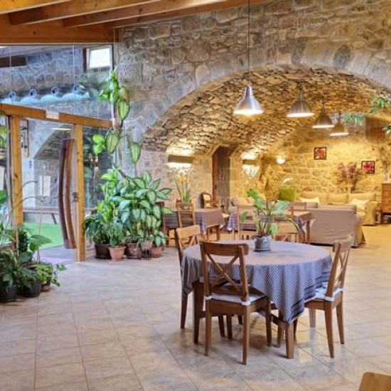 Las comidas son de cocina casera y tradicional, elaboradas con productos propios de autoconsumo, entre ellos el vino, carnes, verduras, embutidos, confituras, huevos, etc. Acostumbramos a comer todos juntos con tertulia opcional.