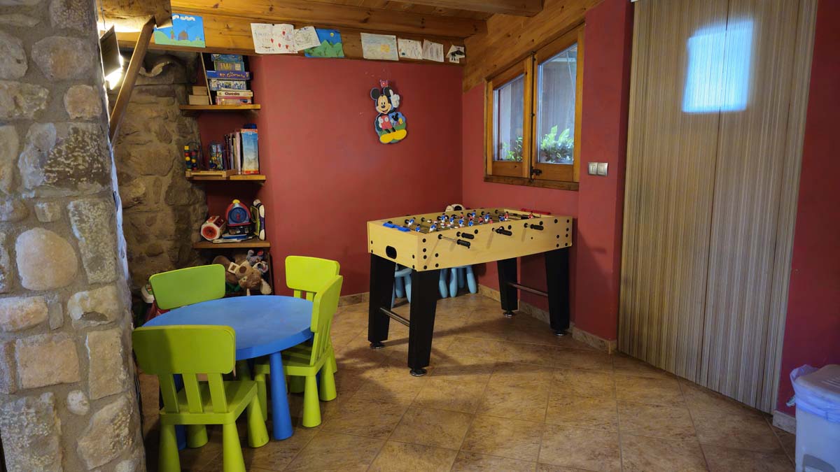 La sala de estar está equipada con sofás, TV, mesas y sillas para el descanso o juegos de mesa, un rincón infantil con futbolín y juguetes para los más pequeños,...